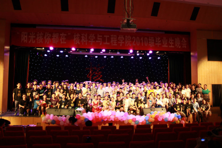 团总支书记赵珥希老师、毕业班班主任以及部分任课教师。本次晚会以“阳光核你都在”为主题,分为“阳光”、“核”、“你”三个篇章为2010级毕业生做毕业庆典,给即将毕业的大四同学们送去毕业祝福。