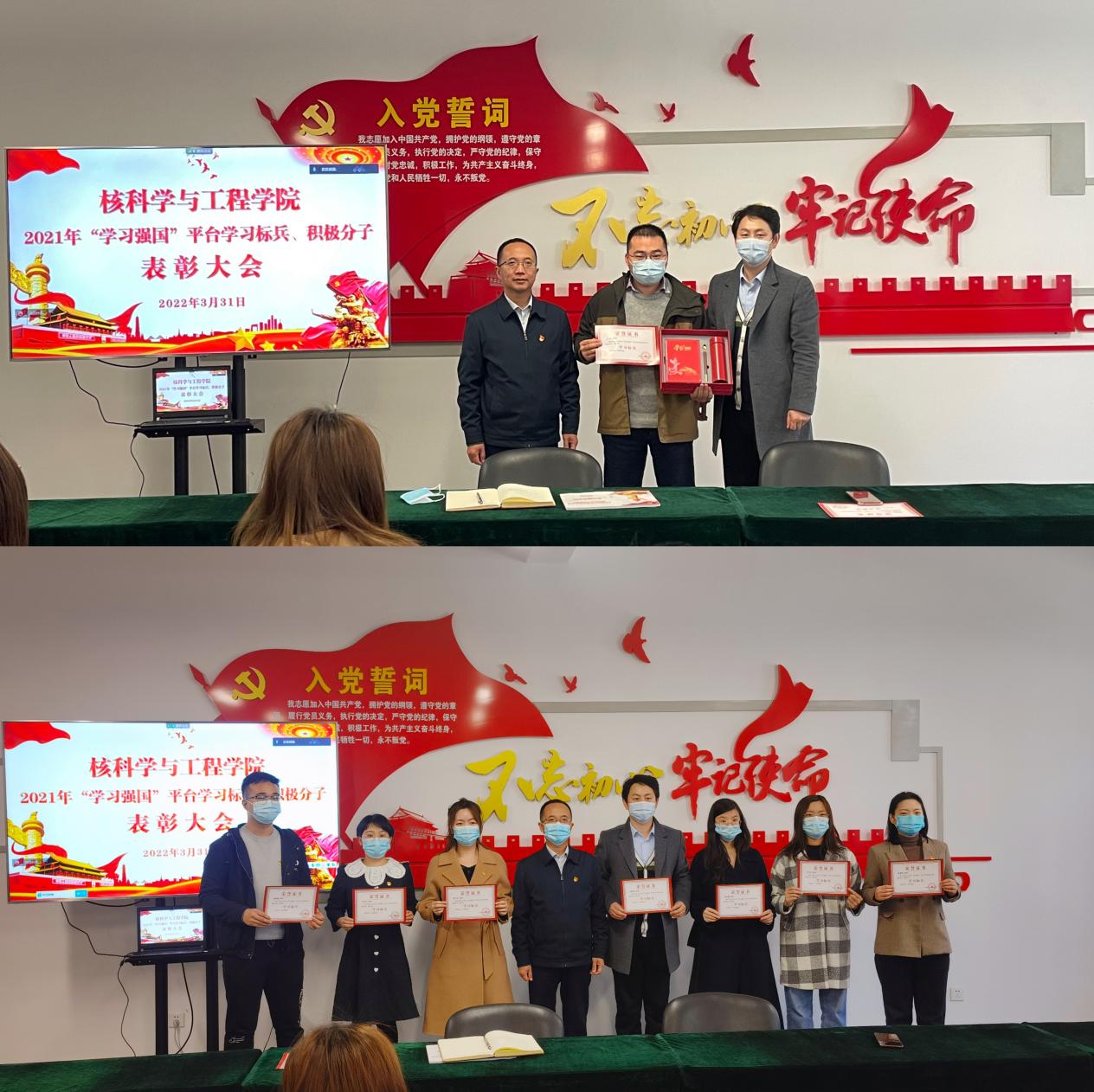 会上,学院党委对学院2021年度“学习强国”平台学习标兵、学习积极分子进行表彰,李林书记为领奖代表颁发奖状和精美礼品。李林表示,希望受表彰的先进个人珍惜荣誉、再接再厉,发挥模范带头作用。学院全体师生要以他们为榜样,进一步加强“学习强国”的学习成效,从讲政治的高度重视学习、抓好学习,坚持学懂弄通做实,不断提升学习效果,不断提高思想政治素质,激发学习和干事创业激情,为学院事业发展贡献力量。