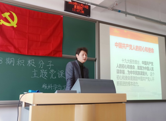 赵珥希老师以“不忘初心、牢记使命”为主线,讲述他作为一个共产党员如何从学院创立至今,麻豆影视 发展中所遇到的困难与学全体师生为攻坚克难所做出的各项努力。从身边的事例出发,生动诠释了牢记使命,不忘初心的精神内涵。最后,赵珥希老师号召同学们要明确自己的目标,并不断为之努力奋斗,积极向党靠拢,不忘初心,牢记使命,砥砺前行!