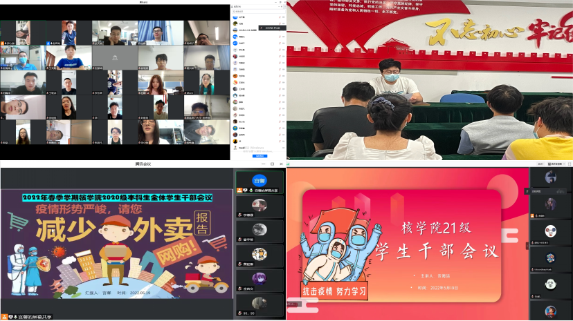 当前疫情防控形势依然复杂严峻,学院领导高度重视疫情防控工作,更关心关注同学们在校的生活和学习情况。学校倡议拒绝外卖、减少网购以来,学院多措并举,认真落实学校疫情防控“外快攻坚”专项行动,各年级辅导员召开学生干部工作会议,介绍学校疫情防控举措,全面听取同学们的宝贵意见、关注同学们的需求,让大家在校期间学得安心、吃得放心、过得舒心。学院学生纷纷表示会科学合理地规划个人生活,兼顾科研学习和身体锻炼,传播昂扬正气,彰显核院学子的责任担当,不负青春、不负韶华、不负时代!