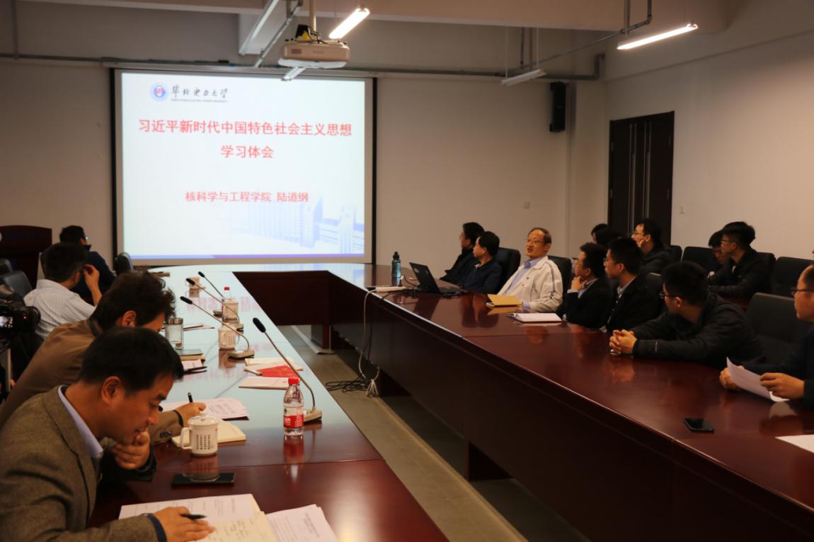 陆书记以习近平新时代中国特色社会主义思想学习体会为主题,围绕习近平新时代中国特色社会主义思想的历史背景、重大意义及丰富内涵、理论特色和实践要求等方面展开,号召全院教职工学习贯彻习近平总书记重要讲话精神,把社会主义核心价值体系融入教育教学全过程,提高教书育人水平,创新教育教学方法,紧密联系学生实际,引导学生正确认识中国核工业卡脖子的重大关键技术,结合麻豆影视 的发展现状及现有科研基础,发挥现有学科优势,开展科研与人才培养工作。