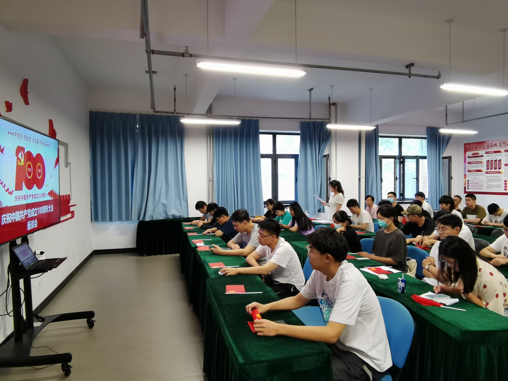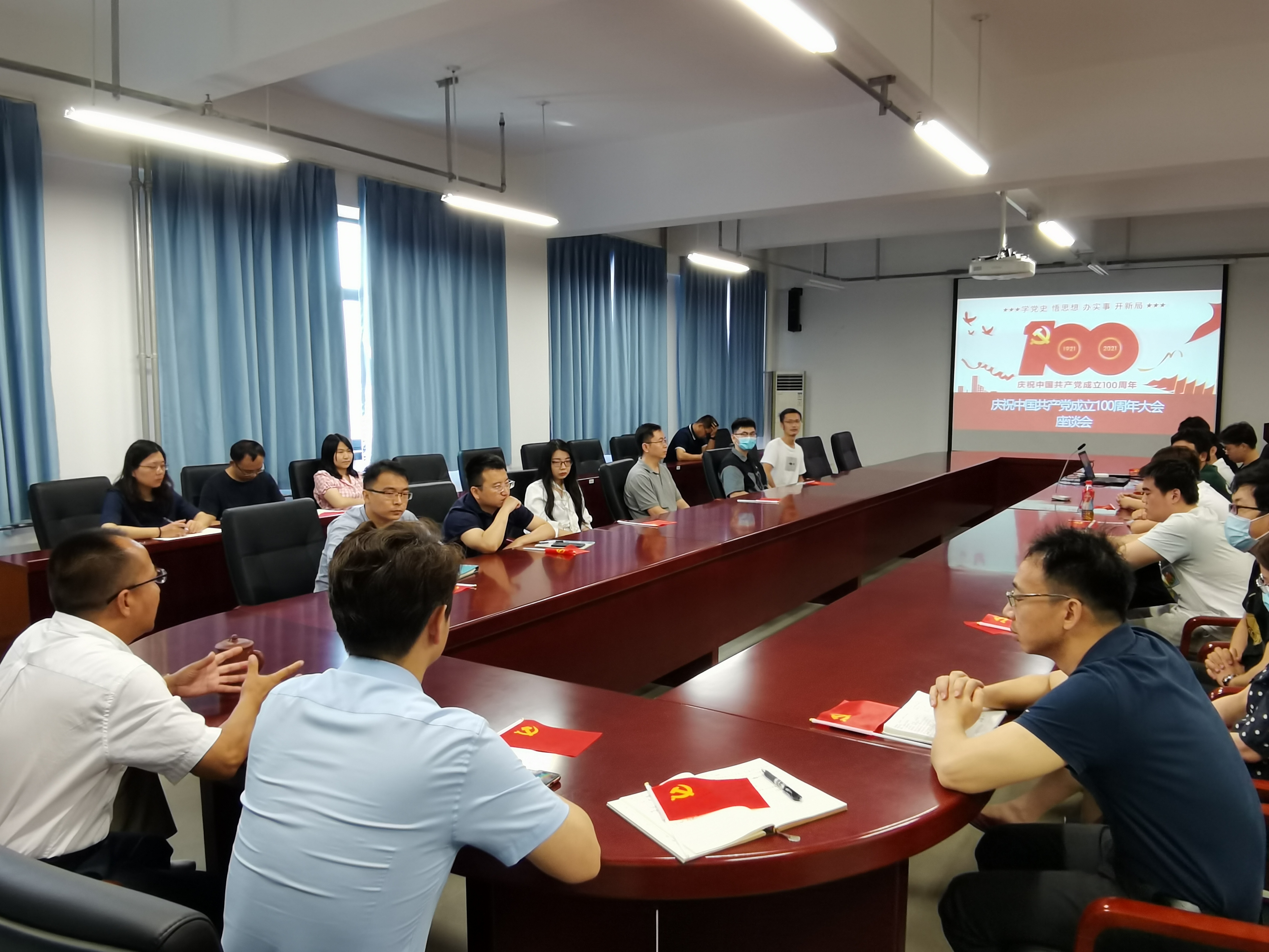 直播结束后学院组织师生召开了座谈会,由学院党委书记李林主持,会上大家踊跃发言,共同祝贺党的生日,并一起回顾了党成长的艰辛历程以及在党的领导下,我们取得的辉煌成就。