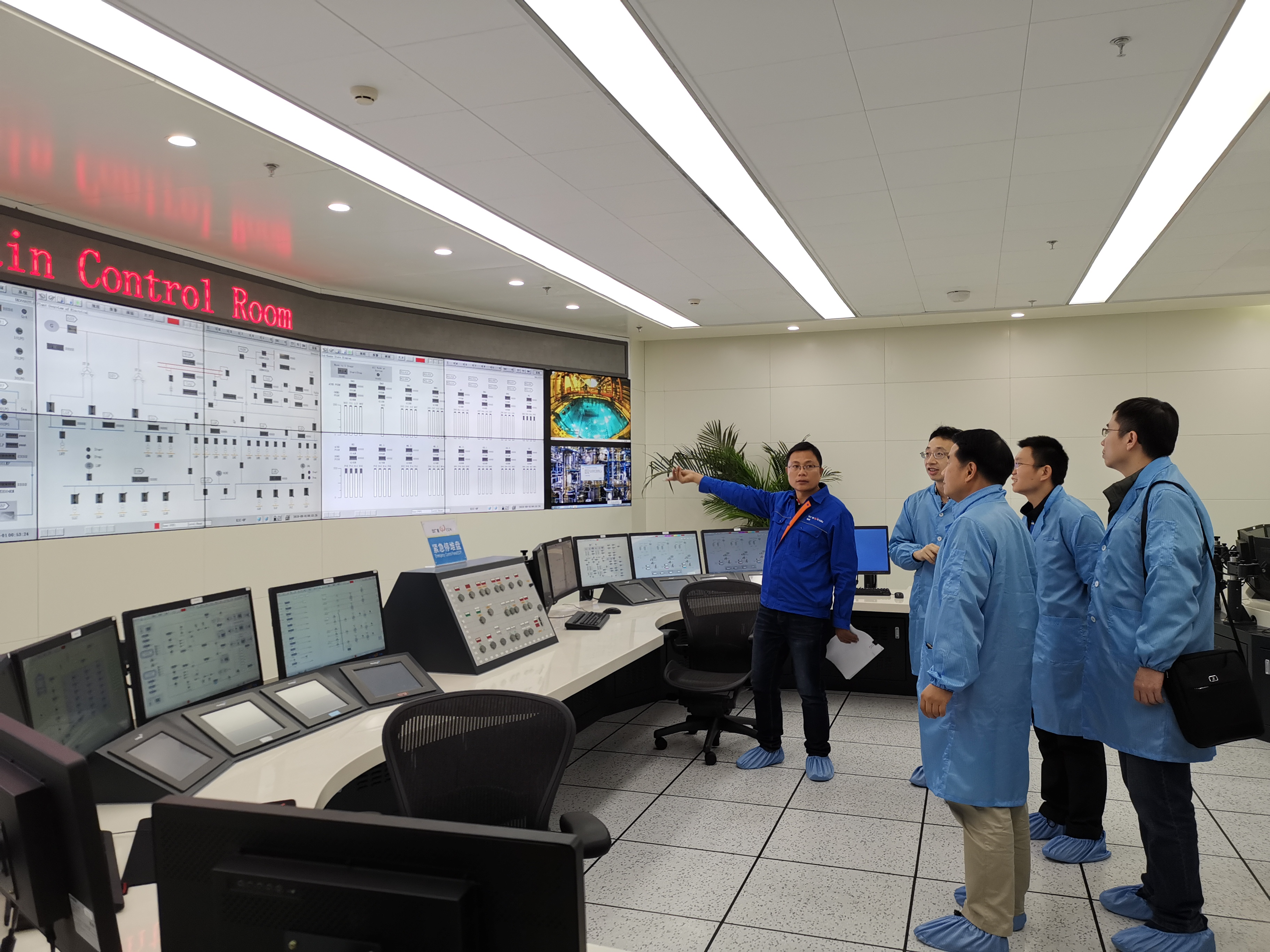 验收小组一行还参观了华龙一号主控室,并就二期工程的主控室设计要求展开了讨论。