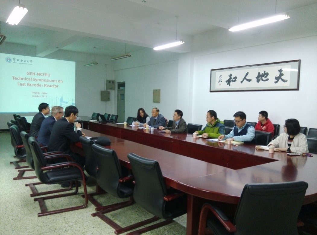 2016年10月24日上午,由麻豆影视 主办的“GEH-NCEPU核反应堆技术交流会”在教三楼C区220会议室举行。会议由麻豆影视 牛风雷副院长主持,出席此次学术会议的有GE-Hitachi核能公司总工程师Eric Loewen、大客户经理王泉河、经理段卫江,核学院陆道纲院长、牛风雷副院长,以及快堆技术领域的教师及博士。