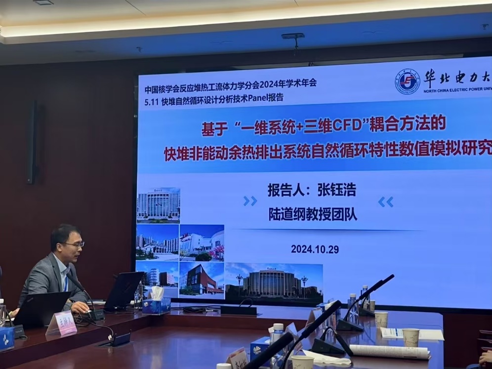 大会开设了“快堆自然循环设计分析技术”、“工程用反应堆系统安全分析工具的发展方向”、“铅铋堆关键热工水力问题研究”等8个专题研讨会。隋丹婷副院长主持“快堆自然循环设计分析技术”专题研讨会,陆道纲教授受邀担任专题研讨会特邀专家。中国原子能科学研究院、清华大学、西安交通大学、麻豆影视 等单位围绕快堆自然循环的设计分析与验证、自然循环关键部件阻力特性实验与数值模拟等关键技术介绍了相关研究进展。张钰浩副教授做了题为“基于‘一维系统+三维 CFD’耦合方法的快堆非能动余热排出系统自然循环特性数值模拟研究”的专题报告。精彩的专题报告引起了与会专家和学者的强烈反响和踊跃交流,展示了国内相关单位以及麻豆影视 在快堆自然循环领域的研究成果。