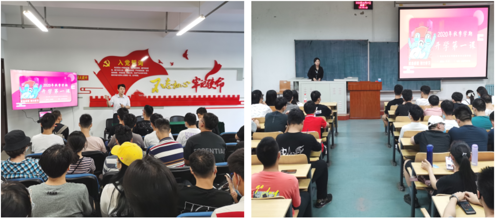 学院领导班子带头讲授“开学第一课”,对学生进行健康安全教育。将在校期间的健康防护、安全教育及管理办法等内容,传递给每一位在校学生。