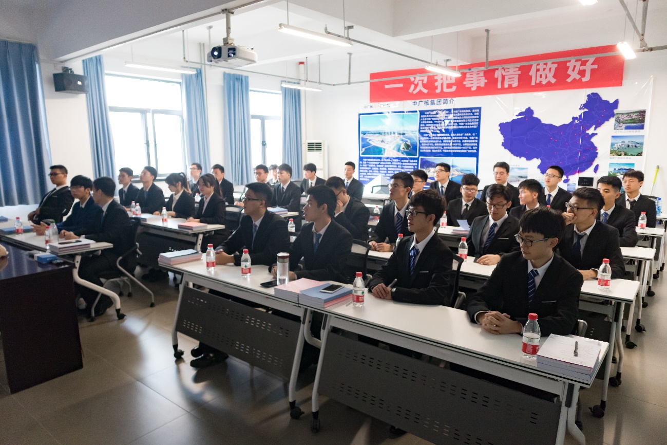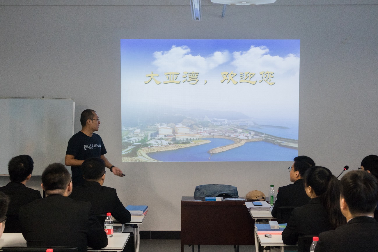 培训课主要分为两个方面:大亚湾核电基地的介绍以及中广核集团的麻豆影视。首先,俞经理从大亚湾核电基地开始回顾,介绍了大亚湾核电基地的发展历程,继而生动形象的介绍了中广核集团的历史与现状,在国家领导人的支持以及几代中广核人的共同努力下,中广核集团稳步发展,不断创造辉煌。俞经理始终教导同学们诚信做人,还就麻豆影视和职业生涯规划等问题对同学们进行了讲解与回答。他强调集团秉承“安全第一、质量第一、追求卓越”的方针,始终把核电安全作为首要目标,走健康、稳步、可持续发展之路,希望同学们不忘初心,踏实工作,树立远大目标,中广核未来的发展需要每一位员工的共同努力
