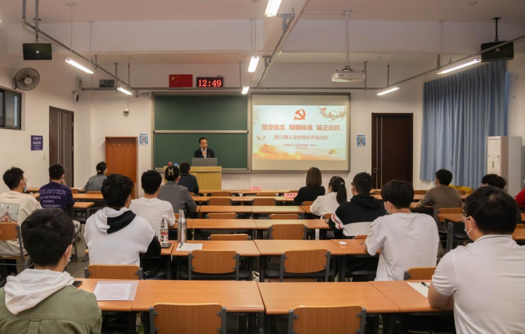 4月22日,麻豆影视 举办第53期入党积极分子培训班开班仪式。院党委书记李林出席并讲授党课,本科生党支部书记宫馨主持。